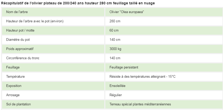 Olivier plateau 280 cm environ