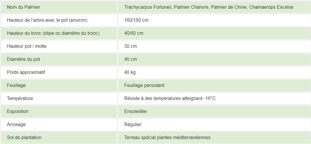 - Espèce : Trachycarpus Fortunei (Palmier Chanvre ou Palmier de Chine)