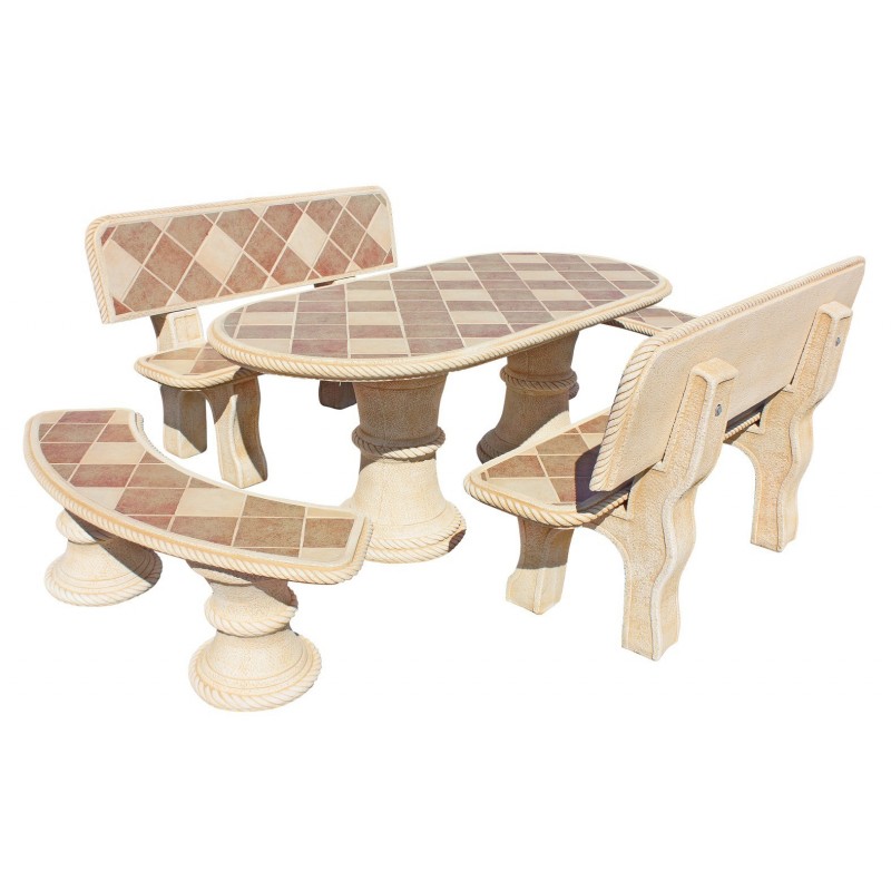 Découvrez les dimensions et les caractéristiques de cet ensemble en pierre OLMO Gres Ocre. Il se compose d’une table ovale mesurant 194 cm de long, 93 cm de large et 74 cm de haut, de deux bancs arrondis de 140 cm de long, 35 cm de large et 46 cm de haut, ainsi que de deux bancs droits avec dossier de 150 cm de long, 56 cm de large et 95 cm de haut. Avec un poids total de 1016 kg, ce salon de jardin en pierre OLMO Gres Ocre est solidement ancré au sol grâce à sa structure métallique interne et au processus de fabrication assurant une résistance aux intempéries telles que la pluie, le gel et les rayons UV.