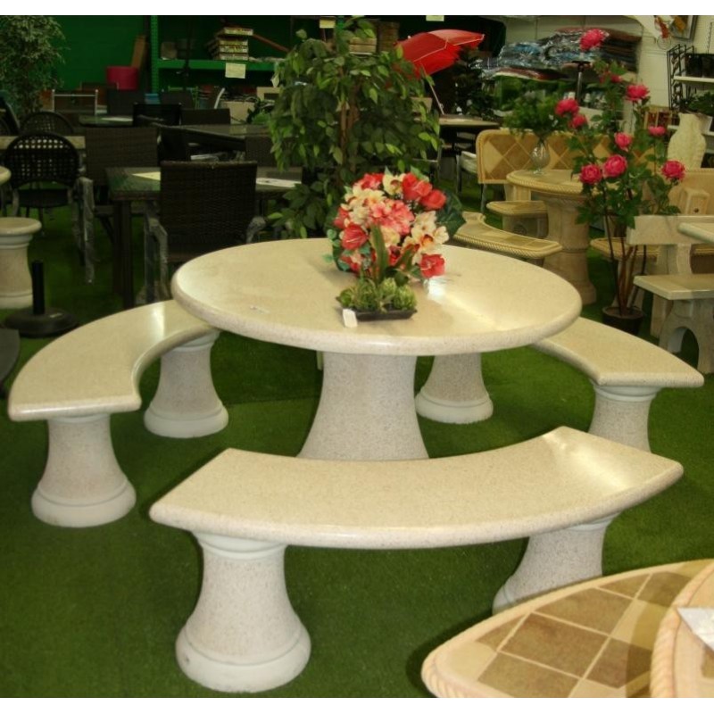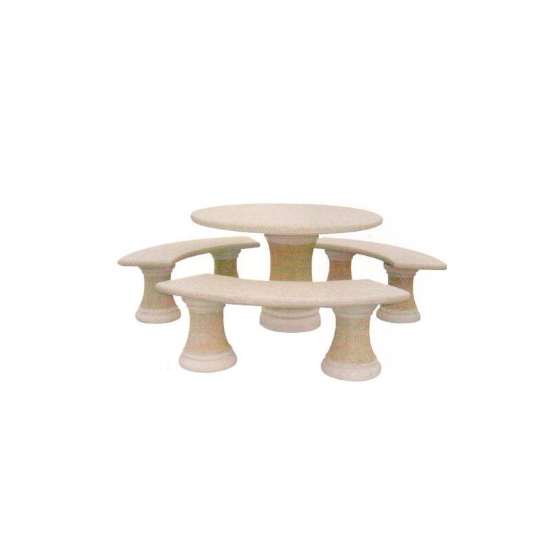 Découvrez les dimensions et les caractéristiques du Portuga Ocre. Cet ensemble se compose d’une table ronde de 125 cm de diamètre et 75 cm de hauteur, accompagnée de 3 bancs arrondis mesurant 125 cm de long, 36 cm de large et 45 cm de haut. Grâce à sa structure ferraillée intégrée et au processus de fabrication du fabricant portugais, le salon de jardin en pierre Portuga garantit une résistance durable face aux éléments tels que la pluie, le gel et les rayons UV.
