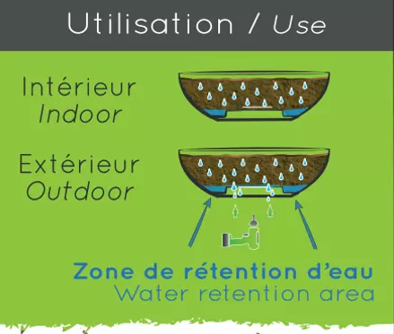 Grâce à sa zone de rétention d’eau, les racines de vos plantes sont préservées de l’asphyxie, favorisant ainsi leur développement harmonieux.